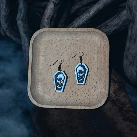 Glowing Coffin Earrings – Hauntingly Chic Skeleton Dangles