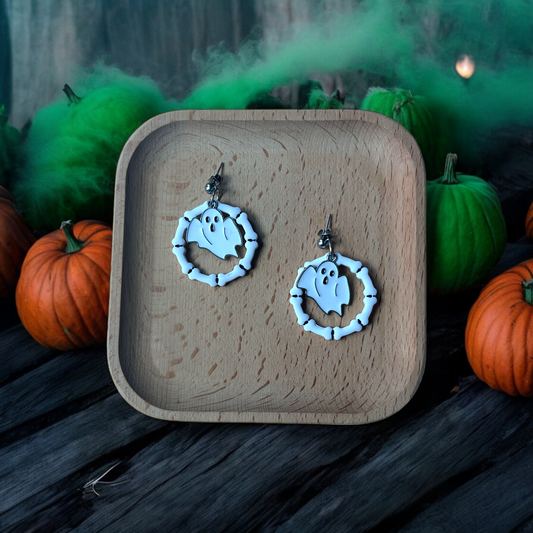 Ghost in Bone Wreath Earrings – Bone-Chillingly Cute Halloween Dangles