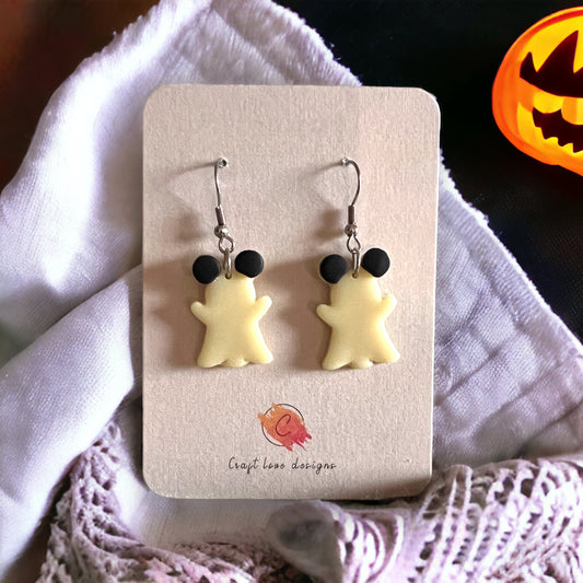White, Glow in the dark, Cute yet Spooky Mouse Ghost Dangle Earrings