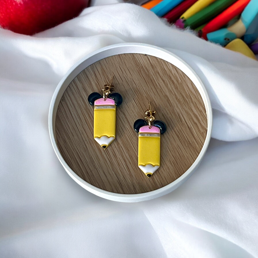 Pencil Magic: Whimsical Mouse Ear School Earrings