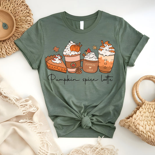Pumpkin Spice Latte T-Shirt - Gildan Heavy Cotton Unisex Tee in Heather Military Green