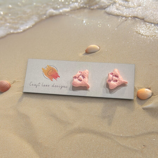Salmon (Pinky/Orangy) Sparkly Baby Manta Studs | Summertime | Cute Beach Earrings