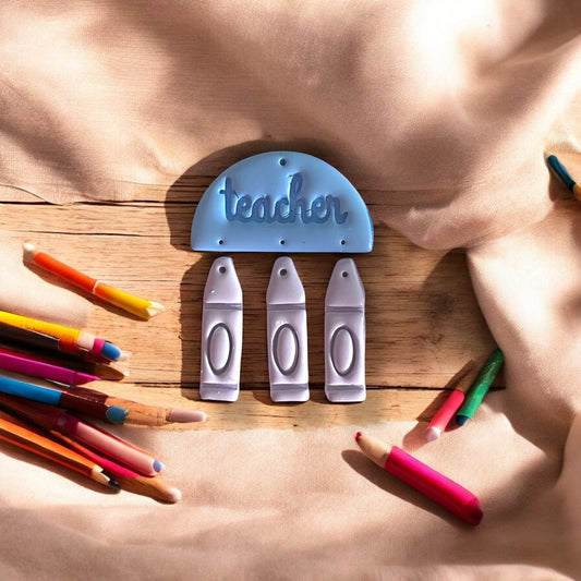 Teacher Dangle – Semicircle Topper with Hanging Crayons Polymer Clay Cutter