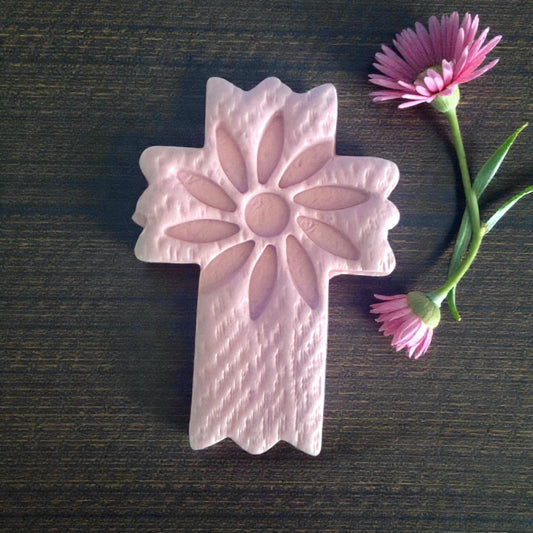 Christian Floral Cross Polymer Clay Cutter with Petal Detail