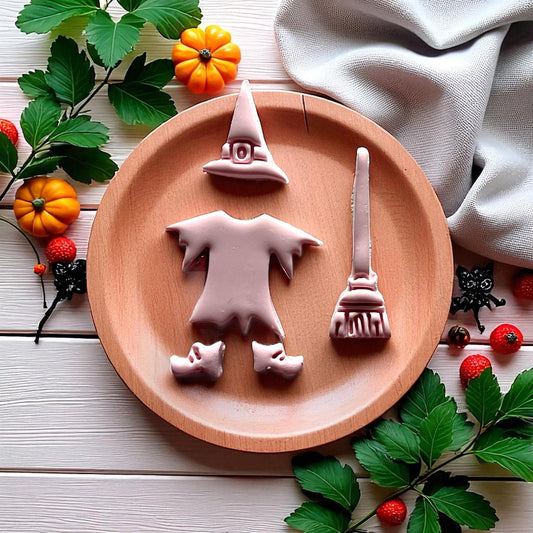 Halloween Witch with Hat Dress Shoes and Broom – Polymer Clay Cutter Set