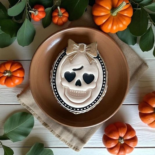 Girly Skull Cameo Spooky Cute Polymer Clay Cutter