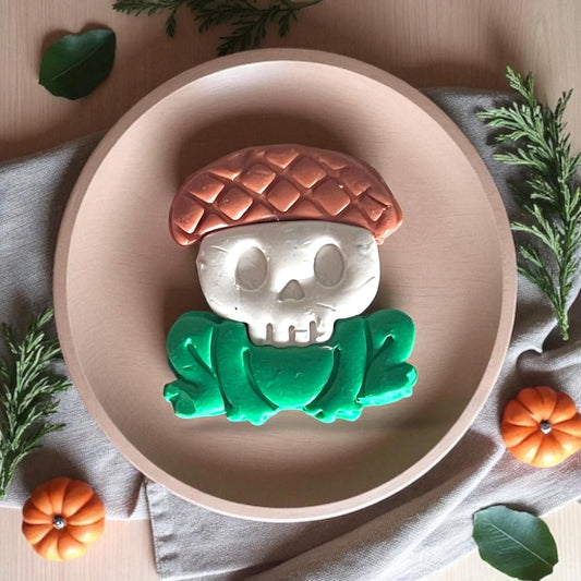 Cute and Spooky Skull Frog Polymer Clay Cutter with Acorn Hat