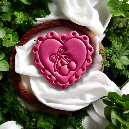 Coquette Heart Cherry Bow | Scalloped Heart| Polymer Clay Cutter