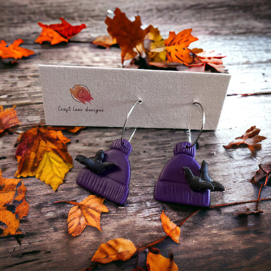 Purple Beanie Fall Bat Hat Dangle Earrings