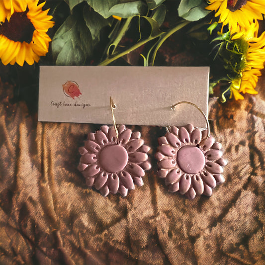Dusty Rose Sunflower Hoop Dangle Earrings