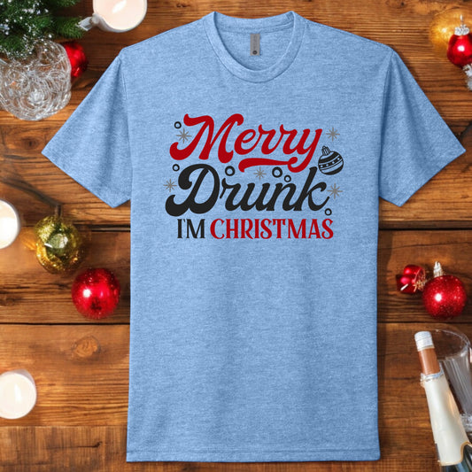 Merry Drunk I'm Christmas T-Shirt – Funny Holiday Party Tee | Next Level Unisex Heather Columbia Blue
