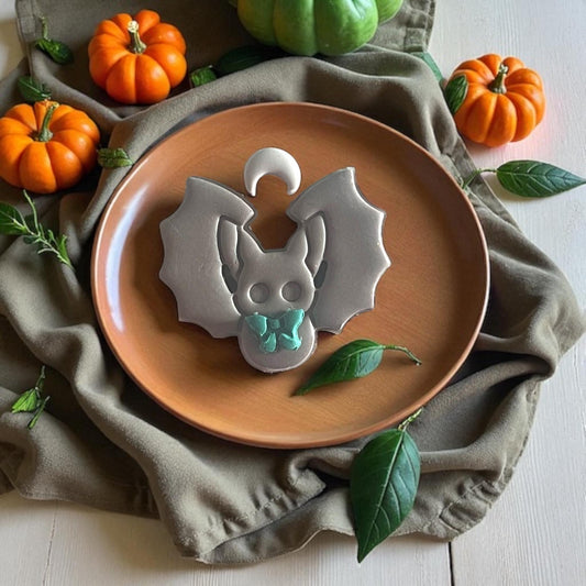 Occult Bat with Moon & Ribbon Polymer Clay Cutter